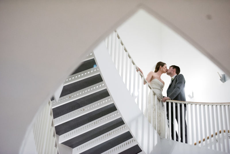Emily and Mark’s day started out with early preparations with help from their friends and family. From the very beginning of the day, one could tell that they are a very energetic couple. The getting ready was filled with laughter and fun. After the entire wedding party got dressed and was ready for the big day, everyone headed for the ceremony which took place at the St. Joseph Church in Chicago. The church was beautiful — we loved it’s architectural detail. The ceremony was fun and filled with entertaining stories from Emily and Mark’s past. The couple couldn’t help but laugh and so did the guests. But there were tears too — happy tears, of course. After the ceremony, the wedding party headed downtown in order to take some pictures at the Chicago bridges and the Olive Park. Following the portraits, the wedding party headed to the Museum of Contemporary Art which is located near the Water Tower. The museum is a gorgeous structure surrounded by contemporary sculptures (which we were able to utilize for a few more portraits). Inside, it holds multiple collections of modern art. The wedding guests were allowed to visit a couple exhibits during the reception. The reception was intertwined with great speeches, delicious food, and awesome live music. We were excited to shoot there and stole the newly weds a couple times for quick photo sessions in different areas of the museum.